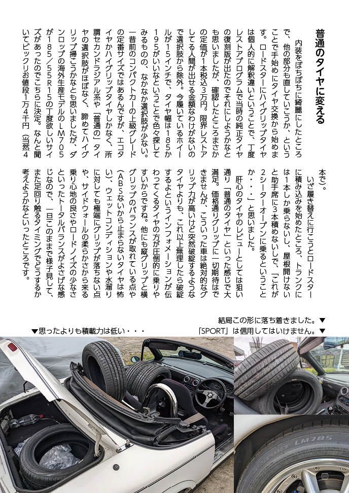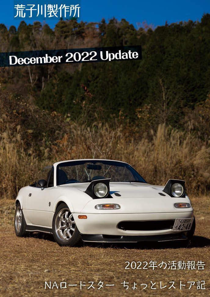 荒子川製作所 December 2022 Update 2022/12/31 Overview Cover コミックマーケット101(2022年12月31日)頒布 B5オンデマンド 本文12p(計16p) Detail 2021年末にひょんなことから我が家にやってきたNAロードスター。 28年落ち28万キロのご老体ですが、走る曲がる止まるにはとりあえず問題ないので、気になるところを直したりしてみた本です。 Sample Sample Sample Sample