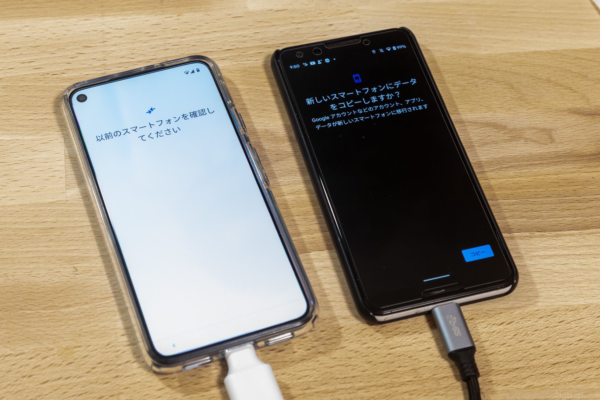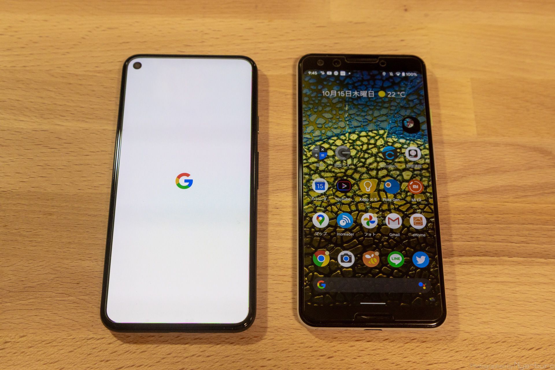 今まで利用していたPixel 3と並べて。画面が広い!