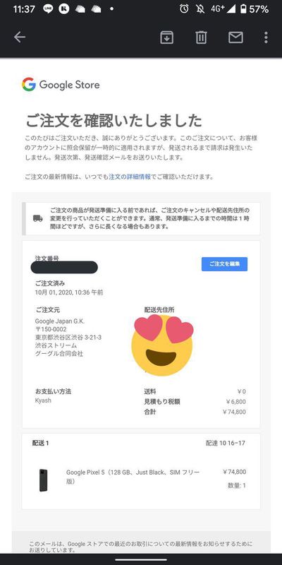 Pixel 3の時は海外発送で、Yamato HKも少々アレだったので配達も相当待たされてしまいましたが、この点が改善されたのは素晴らしいです。