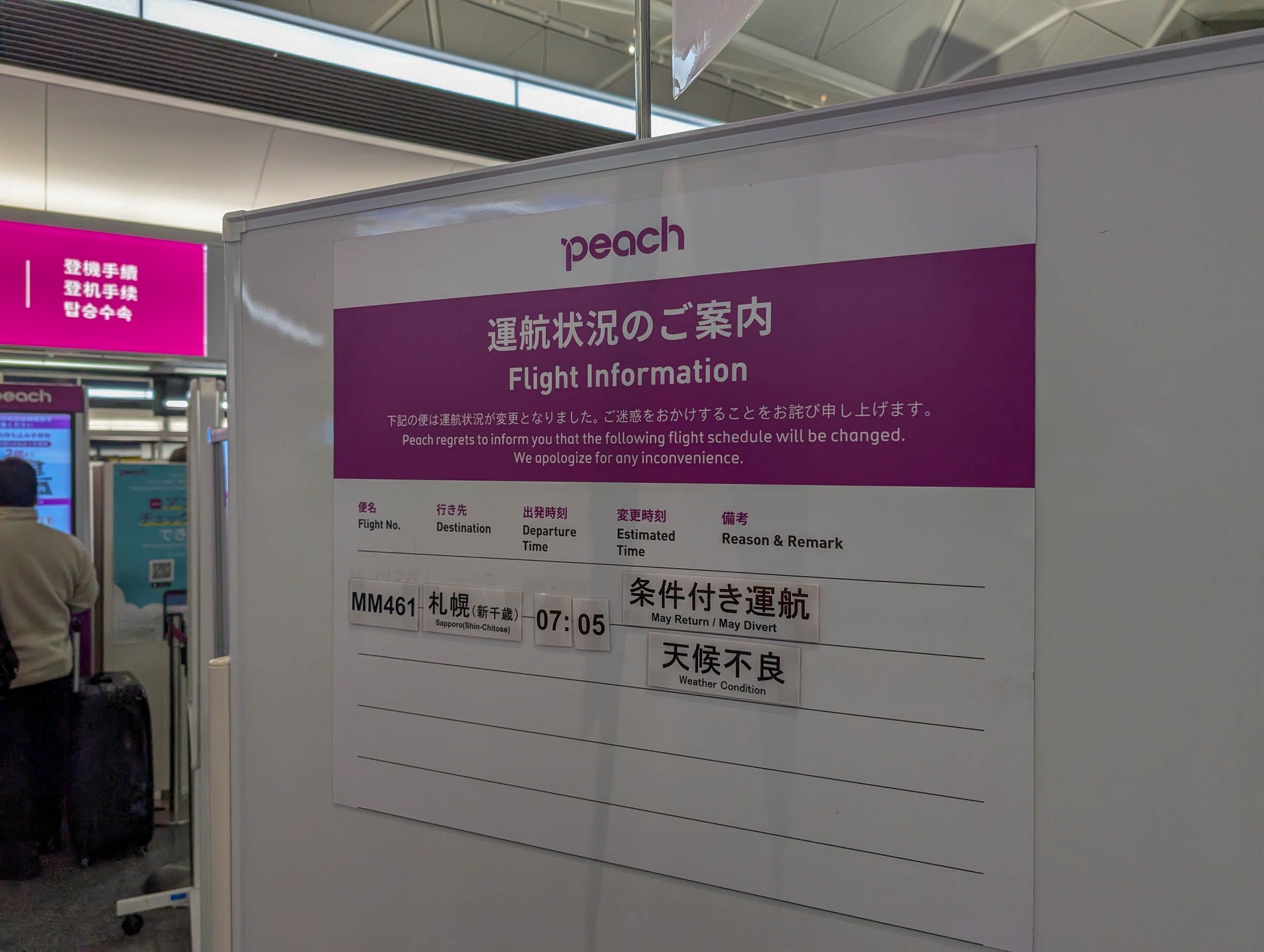 今回はただの旅行なので、大事な予定があるわけでもないのでそれも含めてピーチを選択。