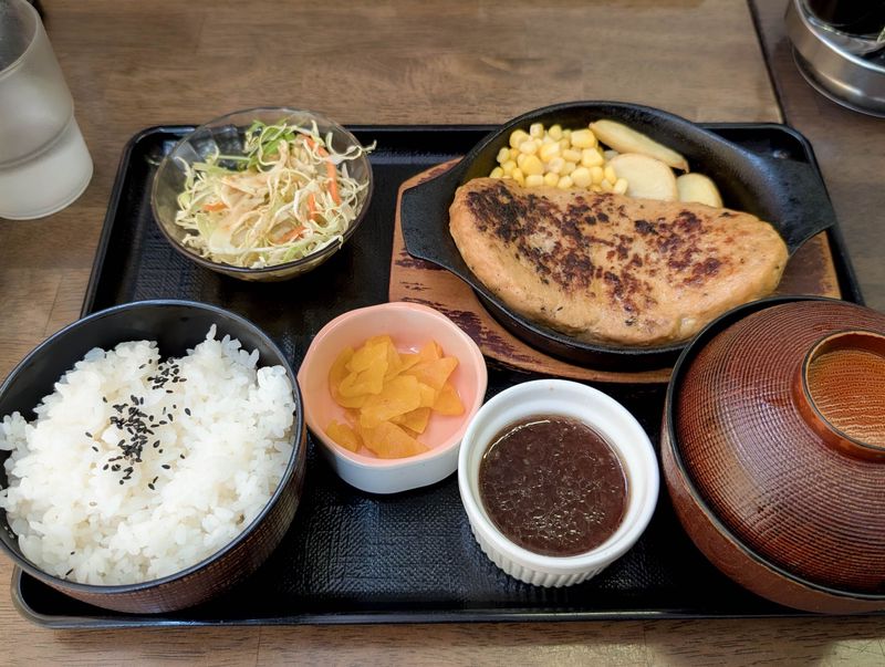 同行者が頼んでくれたのであまり見たことがない鶏ハンバーグにしてみました。